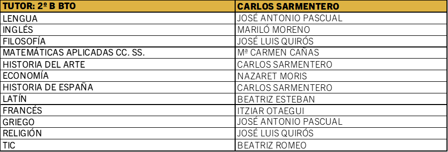 TUTORÍAS Y PROFESORADO 2º BACHILLERATO