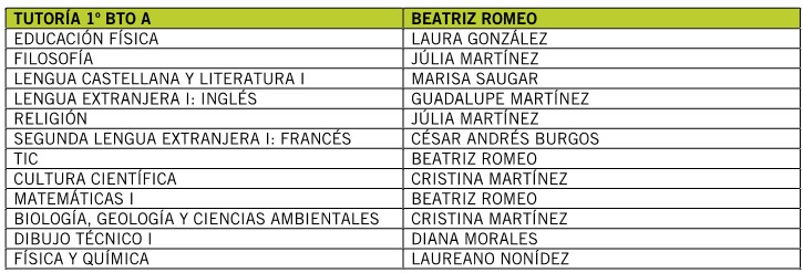 TUTORÍAS Y PROFESORADO 1º BACHILLERATO